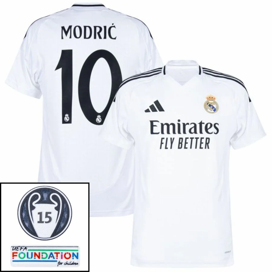 Real Madrid Modric 10 Home Fan Jersey 2024/25 Patches UCL UEFA Foundation (Official Printing)